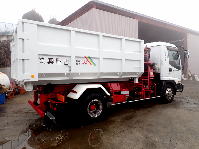 固形物の運搬に使用する車両です。クレーン付き平ボディがあります。